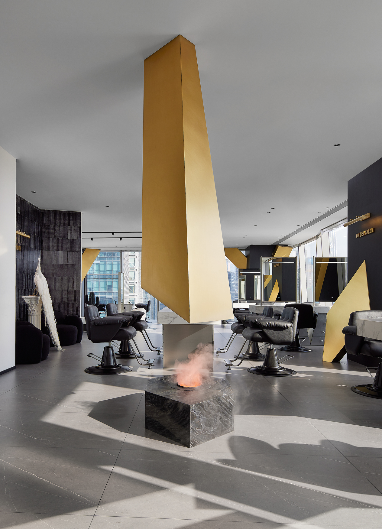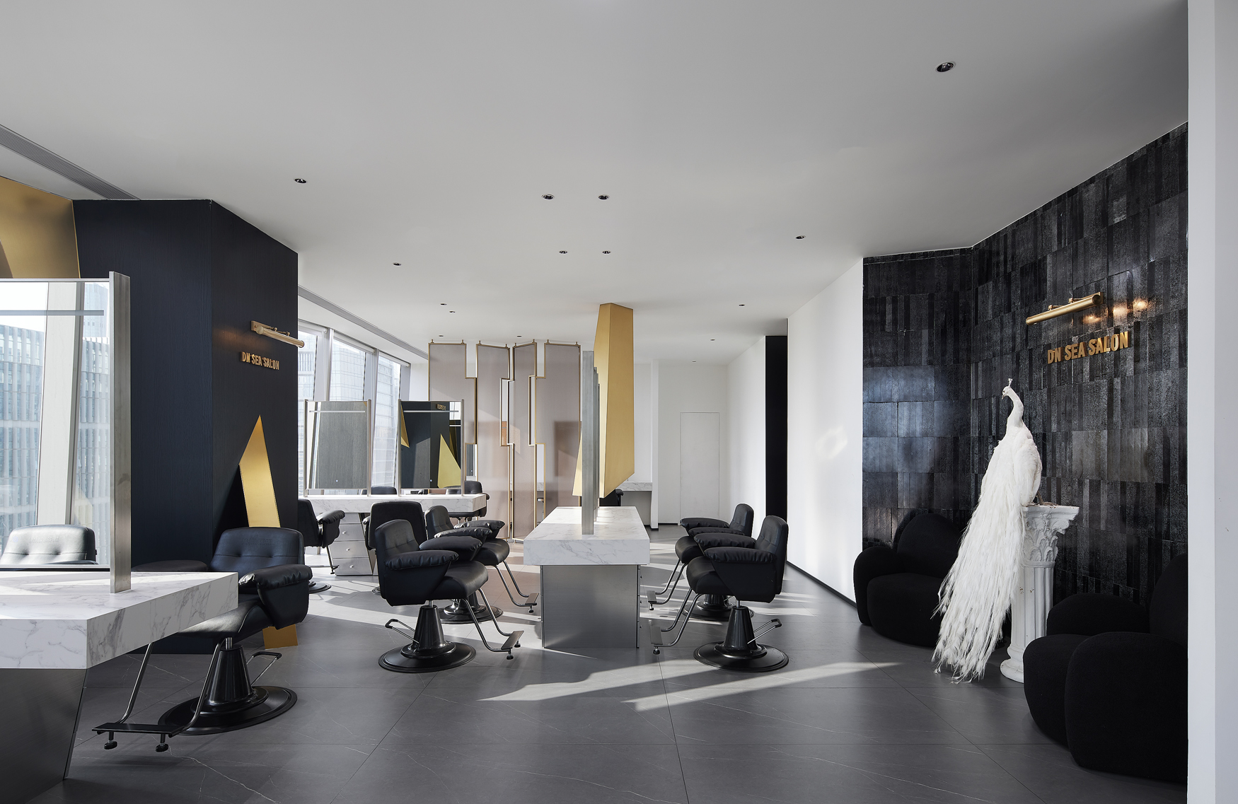 DN SEA SALON employs neutral tones without any strong color bias and create a calm and comfortable atmosphere. Black and white serve as the foundation of modern simplicity, while touches of gold are incorporated as highlights, blending with the base colors to evoke a sense of understated luxury and adding depth to the color scheme of the space.